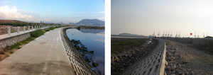 寶安中心區(qū)海堤工程(南側(cè))位于寶安新城區(qū)南側(cè),海堤由雙屆河岸堤、南側(cè)永久海堤及港池岸堤直立堤、永久斜坡和西側(cè)臨時海堤構(gòu)成,總長3.27公里。深勘集團(tuán)對直立海堤采用沉箱加漿砌石胸墻結(jié)構(gòu),斜坡海堤采用拋石擠淤堤身加漿砌石結(jié)構(gòu),海堤護(hù)面為柵欄板,永久海堤按200年重現(xiàn)期高潮位考慮,工程級別為1級。