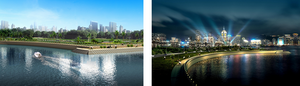 海堤工程既是圍海造地防潮防浪的必要措施,也是中心區(qū)景觀協(xié)調(diào)布局的重要組成部分,將建設(shè)成為具海上風(fēng)光的綠化休閑觀光帶和具有海洋特點(diǎn)及旅游、娛樂功能的主題公園。
