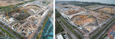 該基坑開挖面積約為5.4萬平米,支護(hù)深度約為12-20米,處于深圳灣填海區(qū)域的不利地質(zhì)條件中,且周邊環(huán)境極其復(fù)雜,基坑北側(cè)為運(yùn)營中的2號線紅樹灣車站、南側(cè)緊鄰運(yùn)營中的11號線以及在建的9號地鐵線路的區(qū)間隧道,為典型的超大超深沿海軟土復(fù)雜基坑。深勘集團(tuán)設(shè)計的基坑支護(hù)結(jié)構(gòu)在南側(cè)(西南側(cè)除外)區(qū)域采用既有地鐵地下連續(xù)墻+內(nèi)支撐的支護(hù)型式,其它區(qū)域采用新建地下連續(xù)墻+內(nèi)支撐的型式,取得了良好的支護(hù)效果,有效地保證了臨近地鐵的安全運(yùn)營。