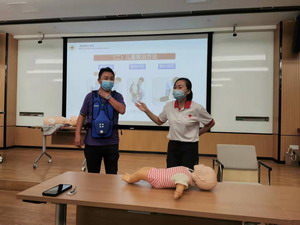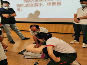 本次培訓(xùn)由中國紅十字總會應(yīng)急救護培訓(xùn)師資庫講師莊燕平主講。老師首先強調(diào)了在120醫(yī)生趕到之前為需要急救的患者在黃金時段實施正確的現(xiàn)場應(yīng)急救援的意義和重要性,通過多媒體及模擬救護向大家講解了常用的急救知識,包括心肺復(fù)蘇技術(shù)、自動體外除顫器的使用、氣道異物梗阻、蛇咬傷、蜂蜇傷、中暑等的處理。通過現(xiàn)場互動演示,全面展示了突發(fā)事故的現(xiàn)場救助流程,講解清晰明了,生動活潑,引起了大家的濃厚興趣。在培訓(xùn)知識內(nèi)容講解結(jié)束后,老師邀請大家親身體驗實操,學(xué)員們踴躍參加,現(xiàn)場氣氛活躍。