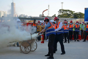 消防演練前,消防行業(yè)專家對工友們進行消防知識培訓(xùn),教授滅火器材使用方法,并開展了現(xiàn)場消防競賽,檢驗消防知識培訓(xùn)成果。